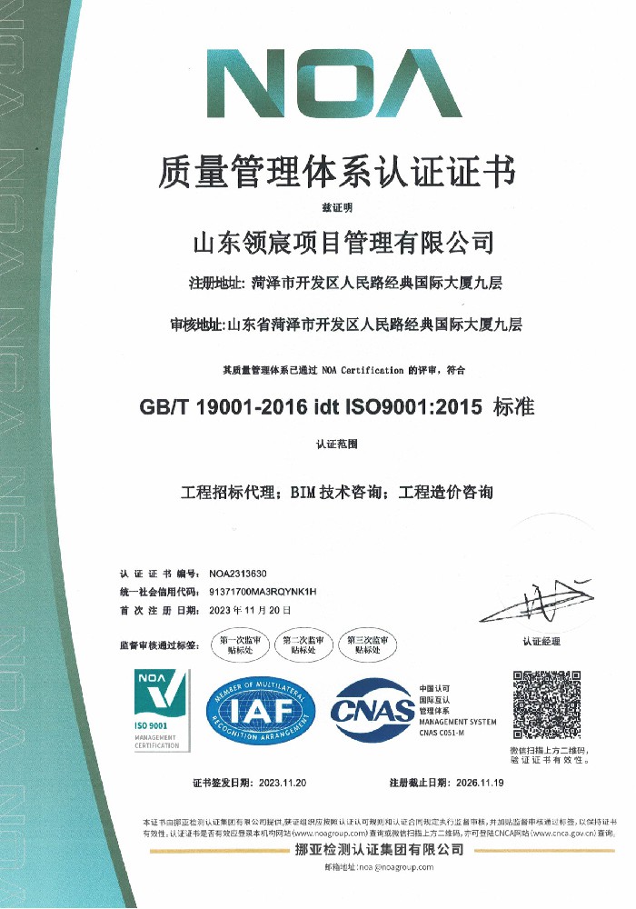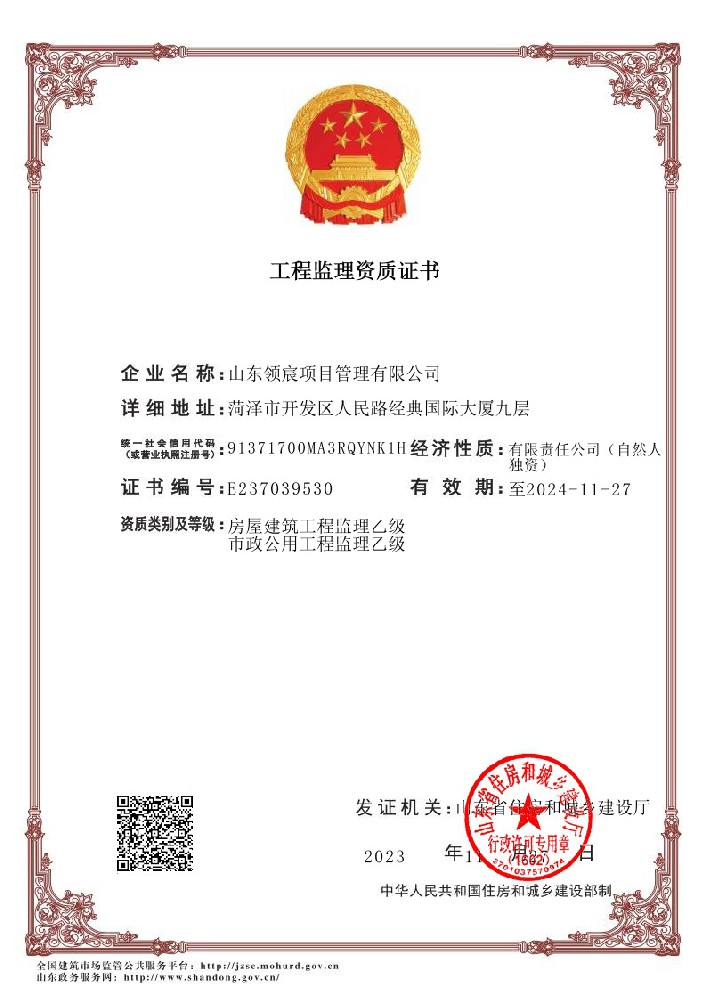 山東領宸項目管理有限公司是一家以全過程工程咨詢?yōu)楹诵牡淖稍兎展荆竟粳F(xiàn)具備工程造價咨詢乙級資質,房屋建筑工程、市政工程監(jiān)理乙級資質和招標代理備案。公司擁有專業(yè)的工作團隊及豐富的行業(yè)經驗,在行業(yè)領域內具有雄厚的實力,企業(yè)管理人員擁有行業(yè)20年以上的資深行業(yè)工作經驗。公司現(xiàn)有專業(yè)技術人員50余人,具有一級注冊造價工程師、注冊監(jiān)理工程師、一級注冊建造師、二級注冊建造師、招標師等工程類國家注冊執(zhí)業(yè)資格證書人員合計30余人以及高級工程師3人,持證上崗率達到90%......